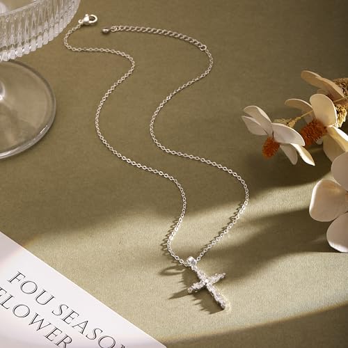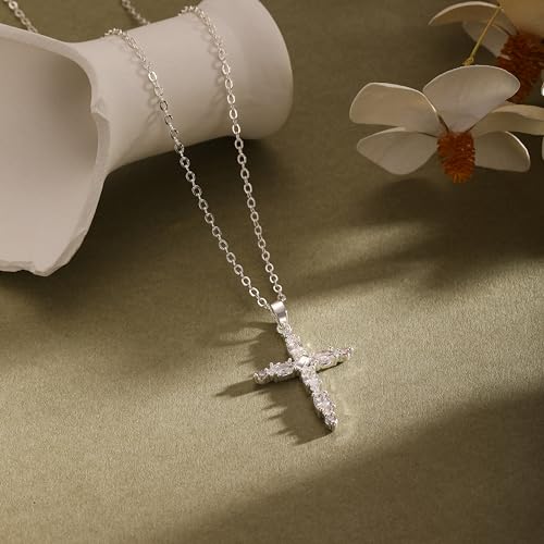 Cross Necklace for Women 14K Gold Silver Diamond CZ Cross Pendant Choker Dainty Gold Necklace Round Diamond Faith Religious Trendy Jewelry Gifts 5