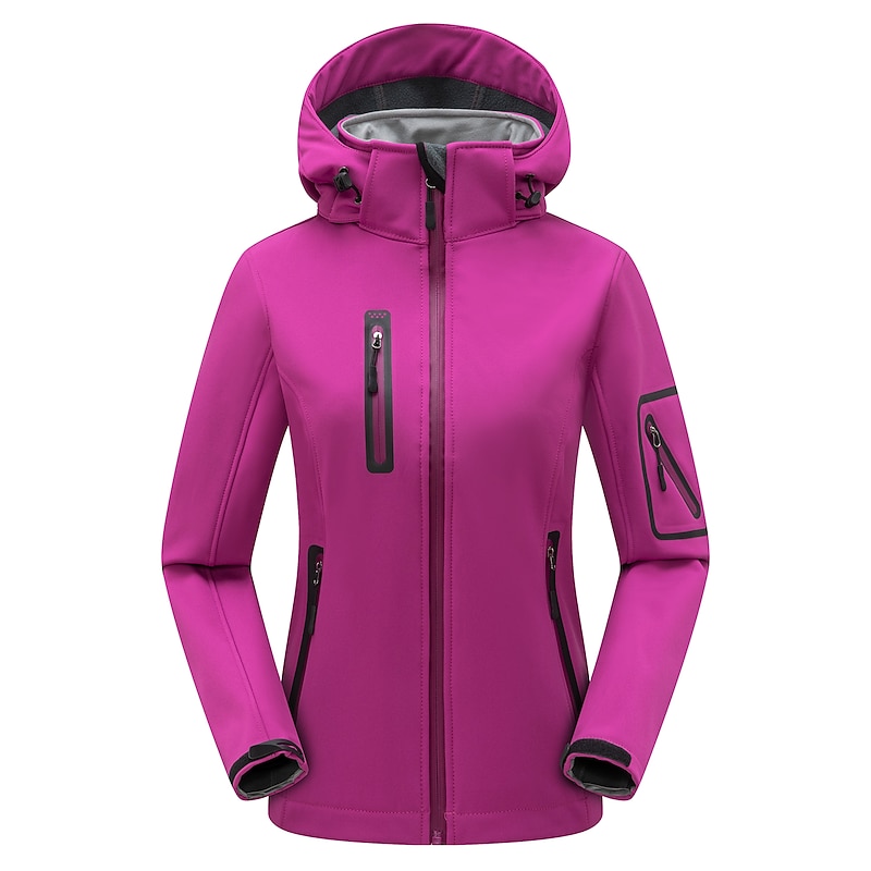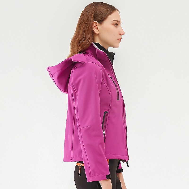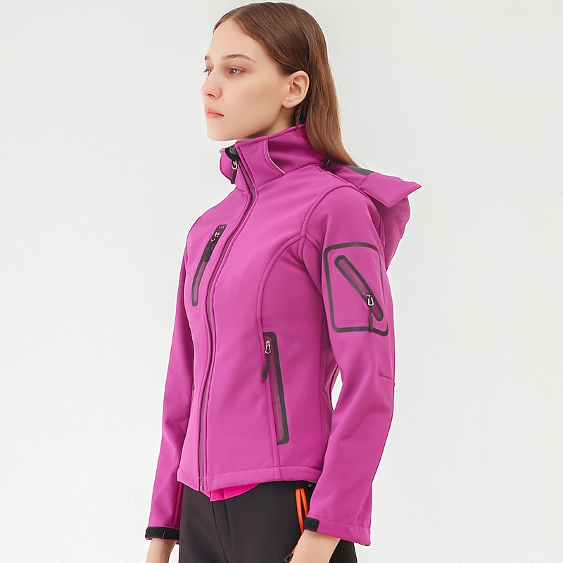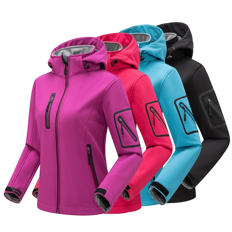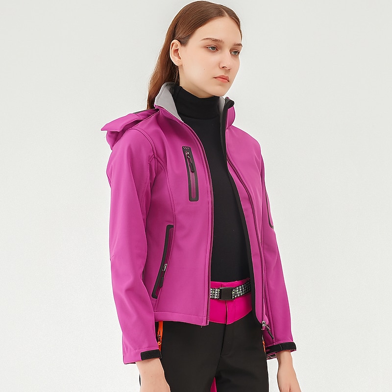 More information about Women's Hiking Softshell Jacket Hoodie Jacket Winter Fleece Jacket Waterproof Outdoor Solid Color Thermal Warm Windproof Lightweight Fleece Lining Outerwear Windbreaker Trench Coat Skiing Climbing