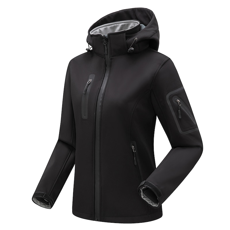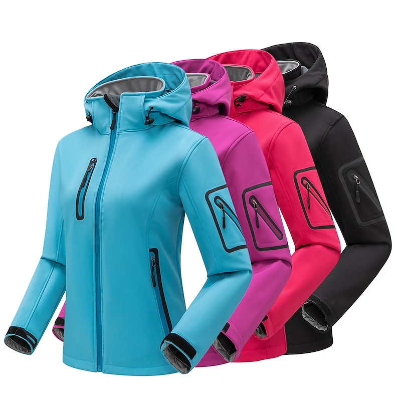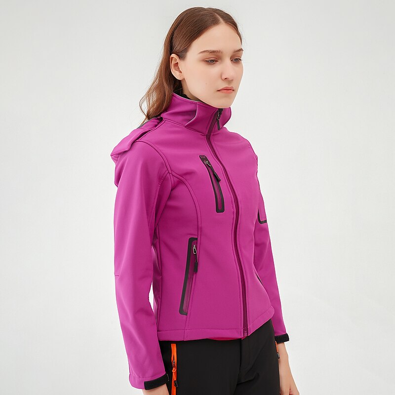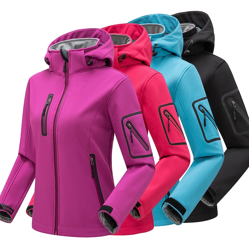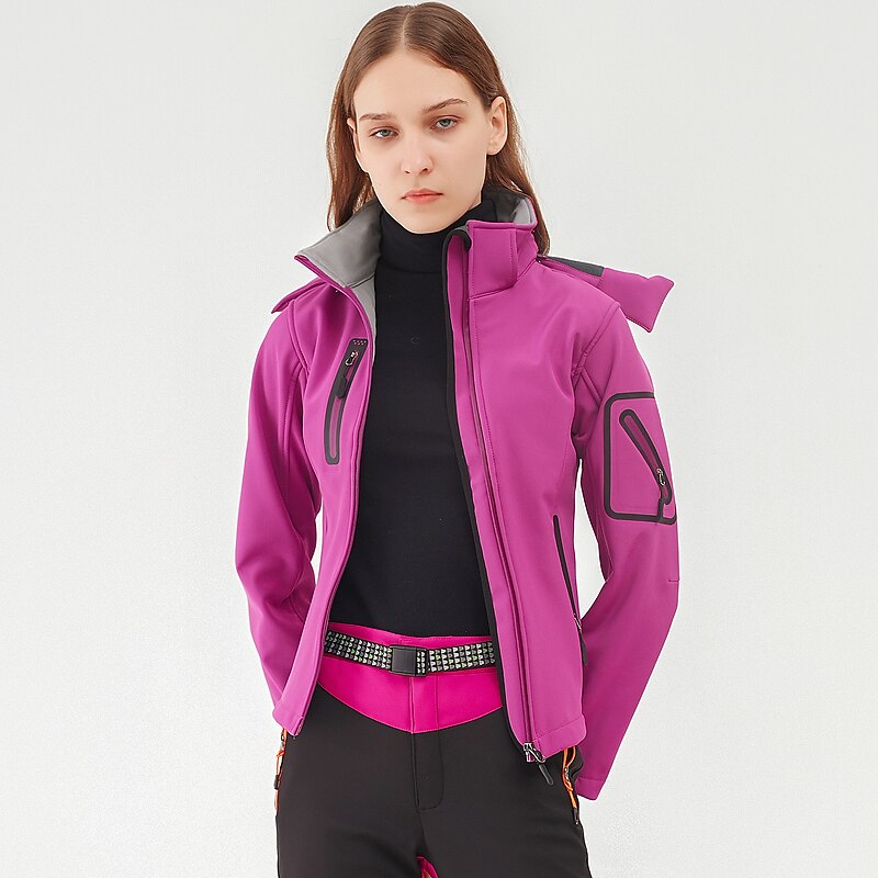 More information about Women's Hiking Softshell Jacket Hoodie Jacket Winter Fleece Jacket Waterproof Outdoor Solid Color Thermal Warm Windproof Lightweight Fleece Lining Outerwear Windbreaker Trench Coat Skiing Climbing