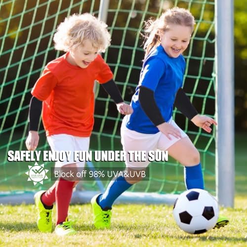 • 【Breathable & Keep Cool】These arm sleeves will keep your kids cool when they are exposed under the sun. As the child sweat, the wicking fabric transfers sweat away from skin so that the sleeve dry quicky and it creates a small air flow between skin and fabric to keep it cool.