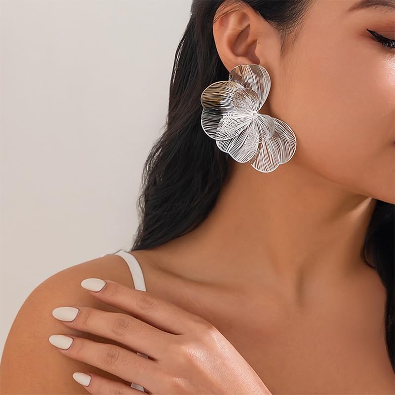 Gold Big Irregular Petal Earrings Bold Large Flower Ginkgo Leaf Silver Oversized Floral Statement Drop Dangle Beach Vacation Earring Jewelry for Women 5