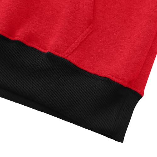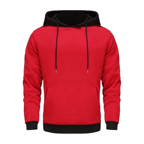 HOT ! Mens Fall Winter Hoodies Trendy Patchwork Pullover Fleece Color Block Long Sleeve Sweatshirts Casual Tops with Pocket