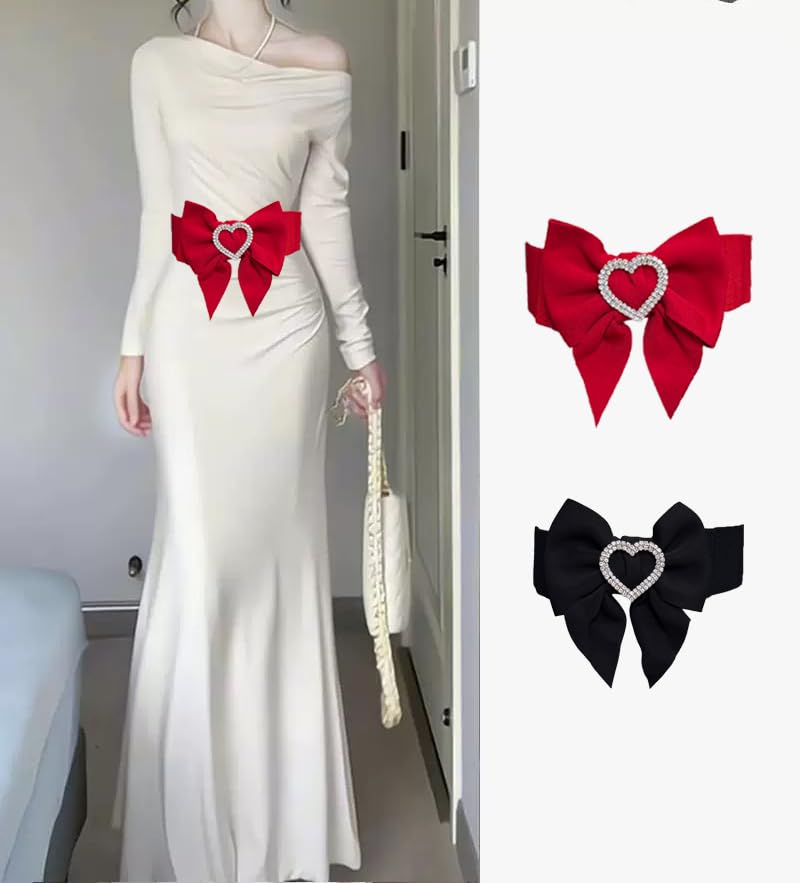 • DESIGN FEATURES: Elegant wide bow belt with heart-shaped rhinestone embellishment, perfect for adding a glamorous touch to any outfit