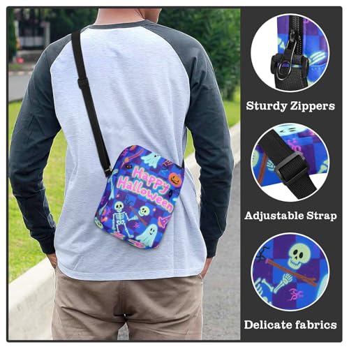 KLL Halloween Blue and Black Pumpkin men's messenger bag Vegan Leather Crossbody Small Bag For Women Travel Shoulder Handbag For Travel 6