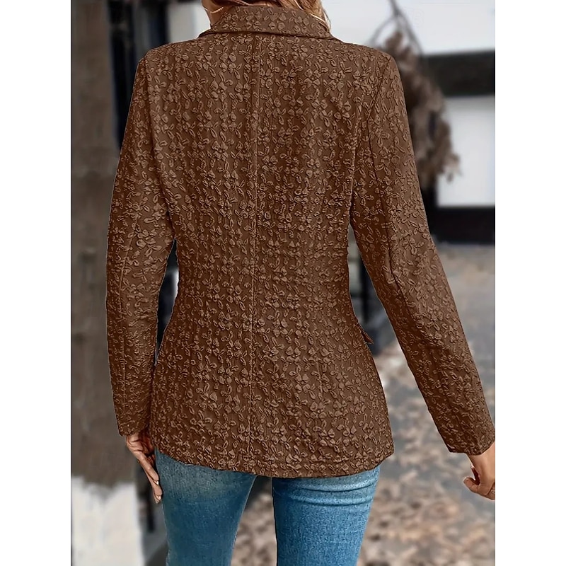 : Crafted from high-quality polyester, this women's blazer offers a comfortable and durable wear, ensuring it withstands the winter season's demands. Its rich, textured surface subtly enhances its elegant appearance, allowing for a refined and sophisticated look.