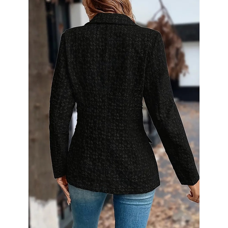 Women's Blazer Button Solid Color Comfortable Stylish Regular Fit Outerwear Long Sleeve Winter Black S