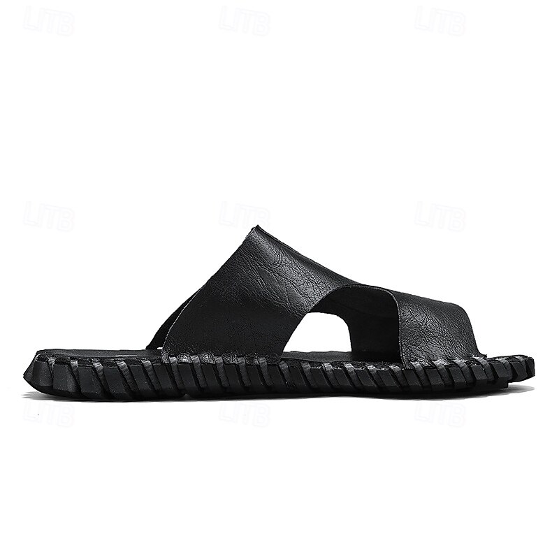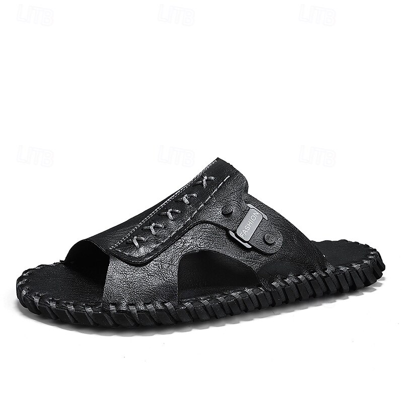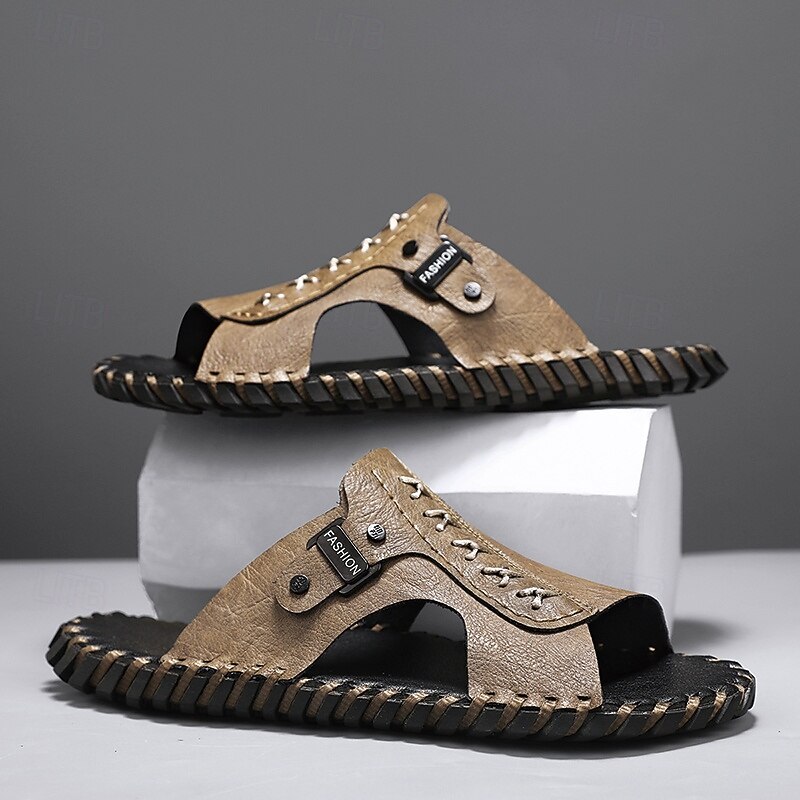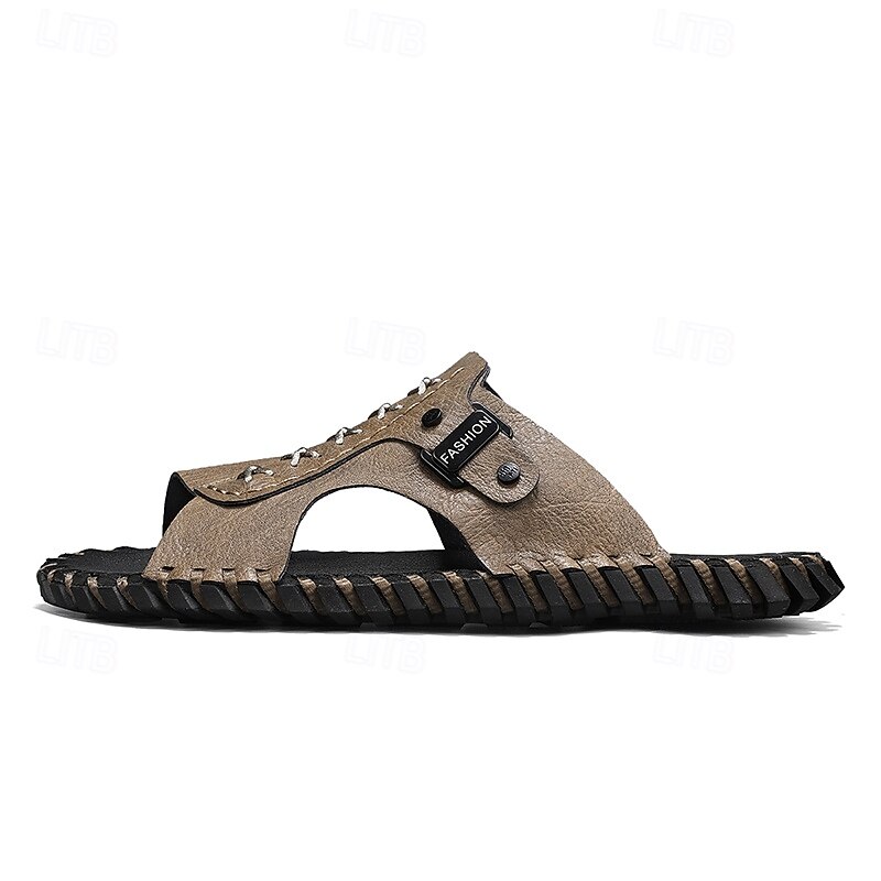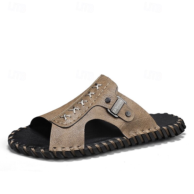 More information about Men's Casual Brown Slide Sandals with Leather Strap and Stylish Stitching Detail – Comfortable for Everyday Wear, Beach and Relaxed Outings