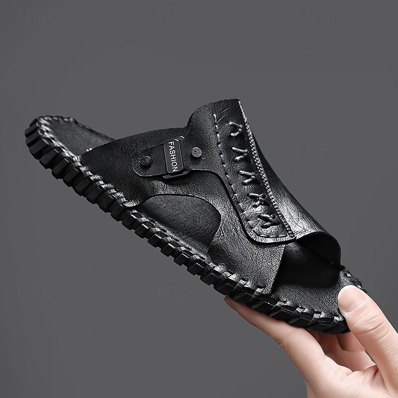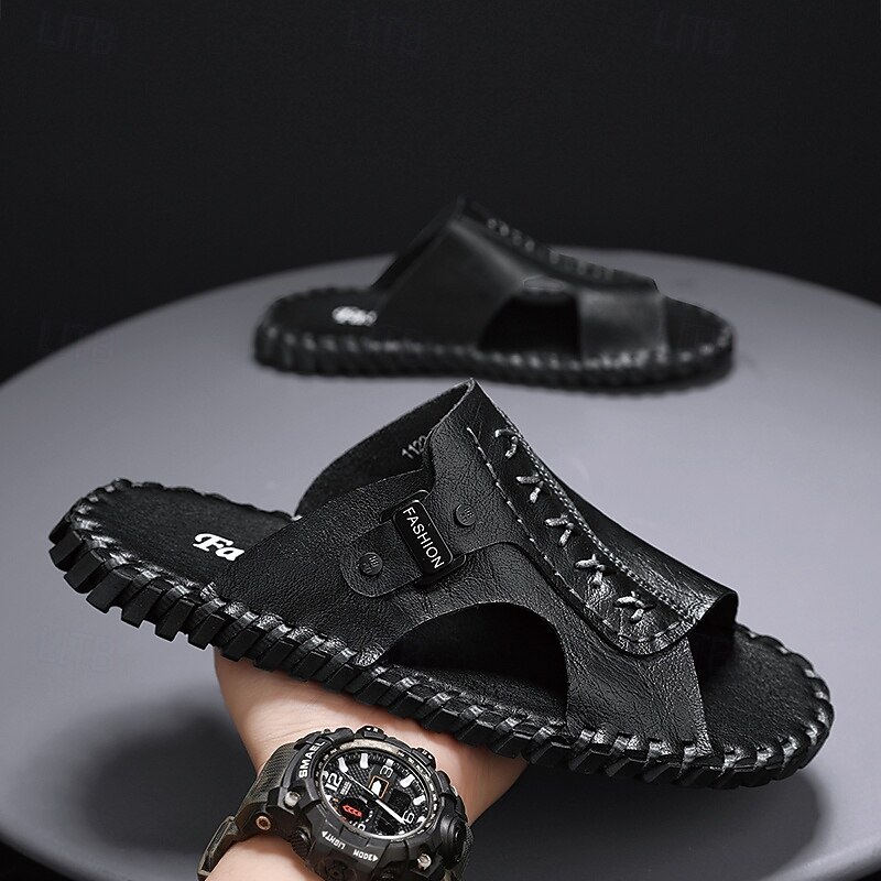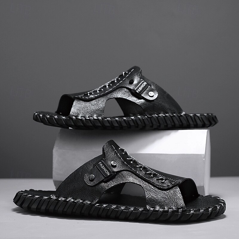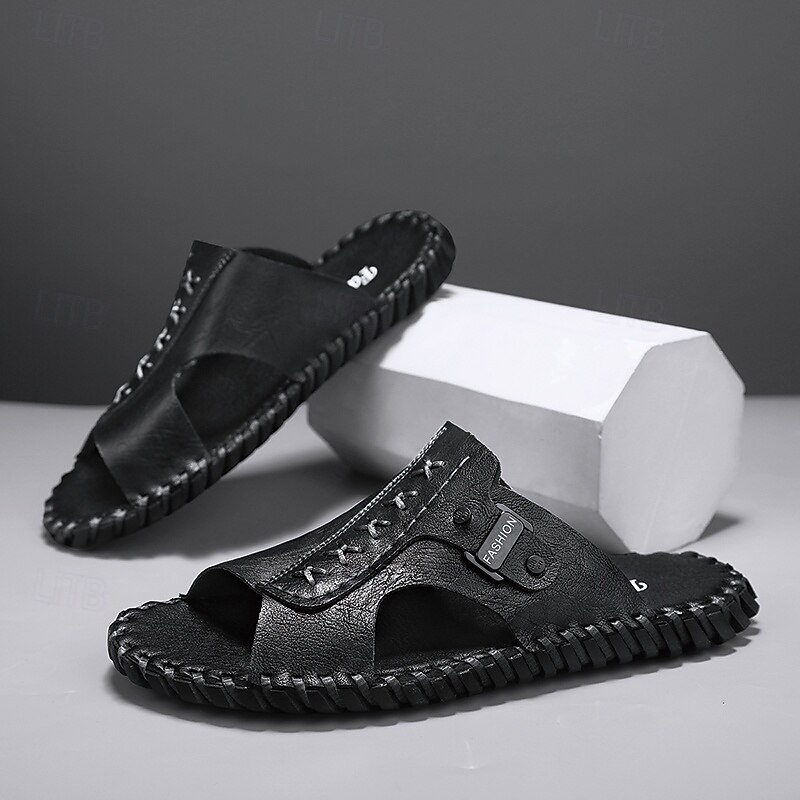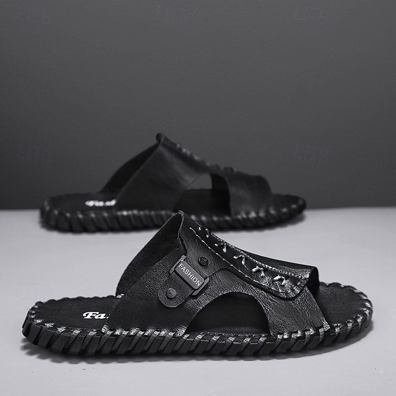 More information about Men's Casual Brown Slide Sandals with Leather Strap and Stylish Stitching Detail – Comfortable for Everyday Wear, Beach and Relaxed Outings