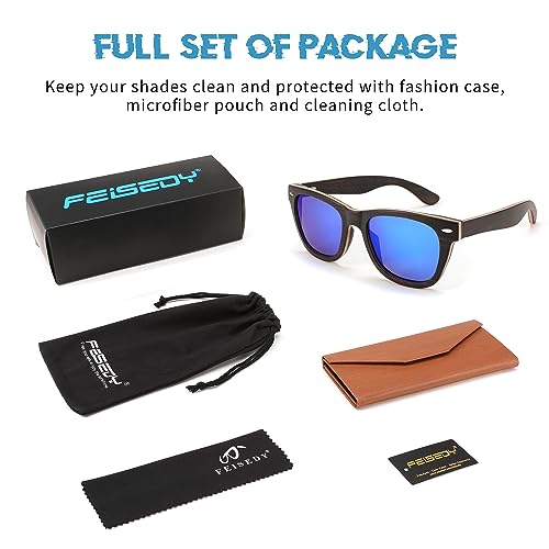 FEISEDY Woodes Sunglasses Polarized for Women Men, Bamboo Wood Handmade Frame, Classic Square UV400 Protection B0006 6