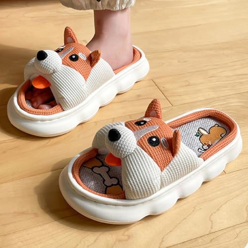 Cute Animal Women's Men's Open Toe Slippers - Warm Non-Slip Thick Sole Sandals Comfy Memory Foam House Shoes Indoor Outdoor(38/39 EU, Corgi) 6