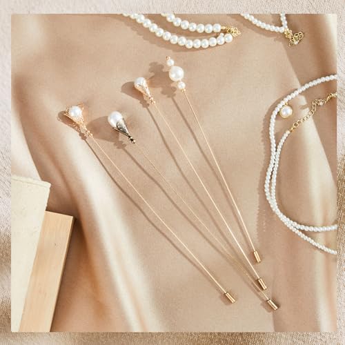 Norme 4 Pcs Elegant Retro Hat Pins Classic Long Imitation Pearl Pins Brooches Suits Ties Hats Scarves Jewelry Set Accessories for Men Women 5