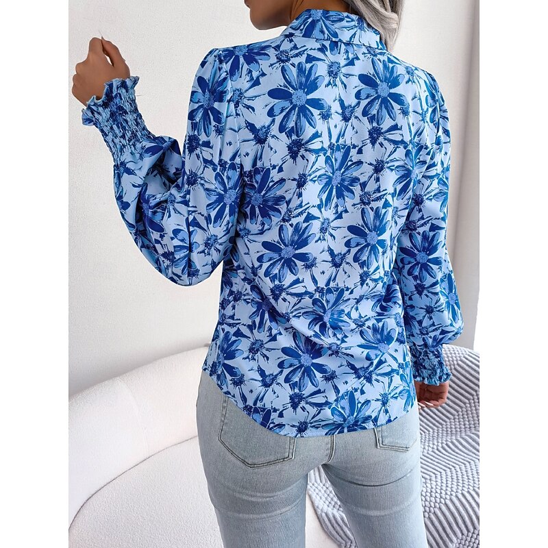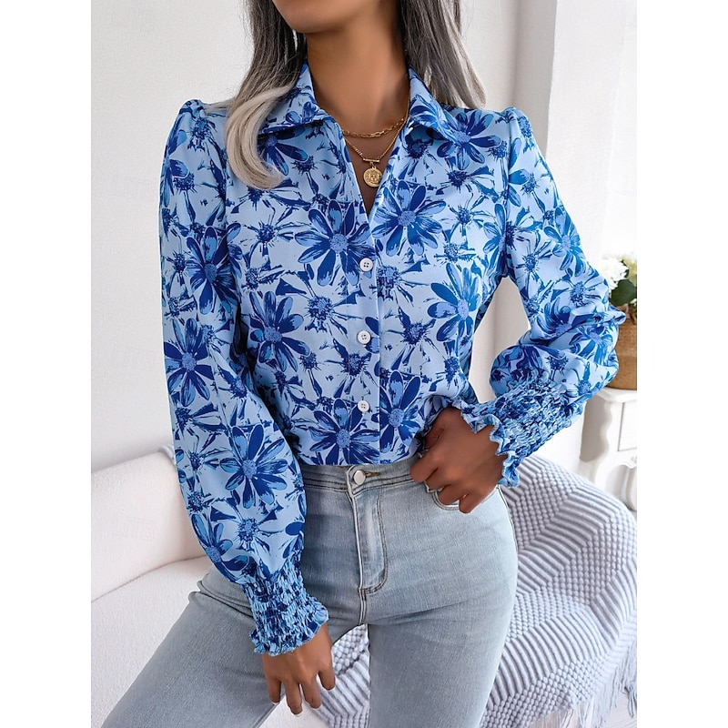 More information about Women's Shirt Blouse Floral Stylish Casual Long Sleeve Shirt Collar Regular Tops Daily Buttons Print Blue Orange Summer Spring Fall