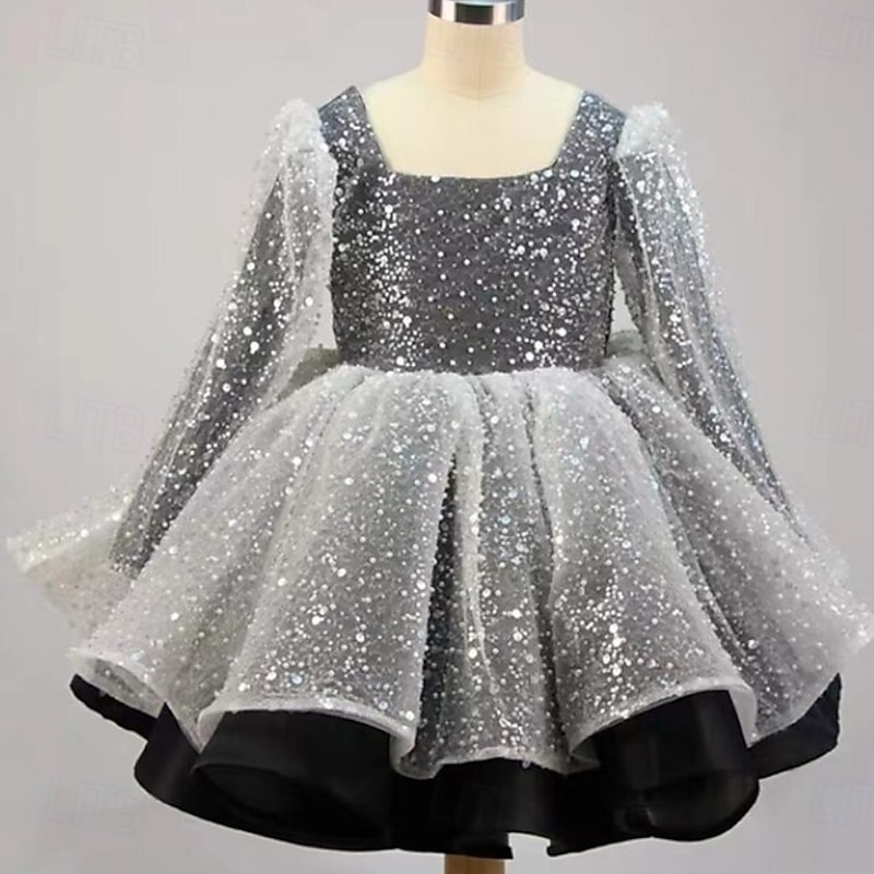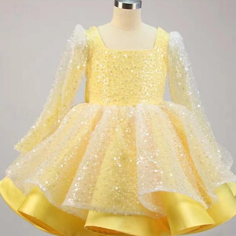 More information about Kids Girls' Party Dress Solid Color Long Sleeve Performance Mesh Princess Sweet Mesh Mid-Calf Sheath Dress Tulle Dress Summer Spring Fall kids Black White Yellow