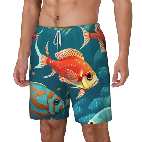 Men's Ocean Underwater Fish Print Quick-Dry Mesh Swim Trunks Stretch Lining Beach Shorts Surfing Summer Vacations 1