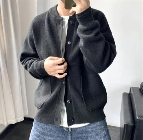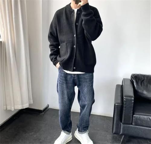 Dcvmvmn Winter Men's Solid Color Knitted Sweater Black Fashion Button Cardigan Sweater 6