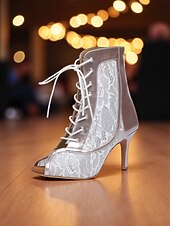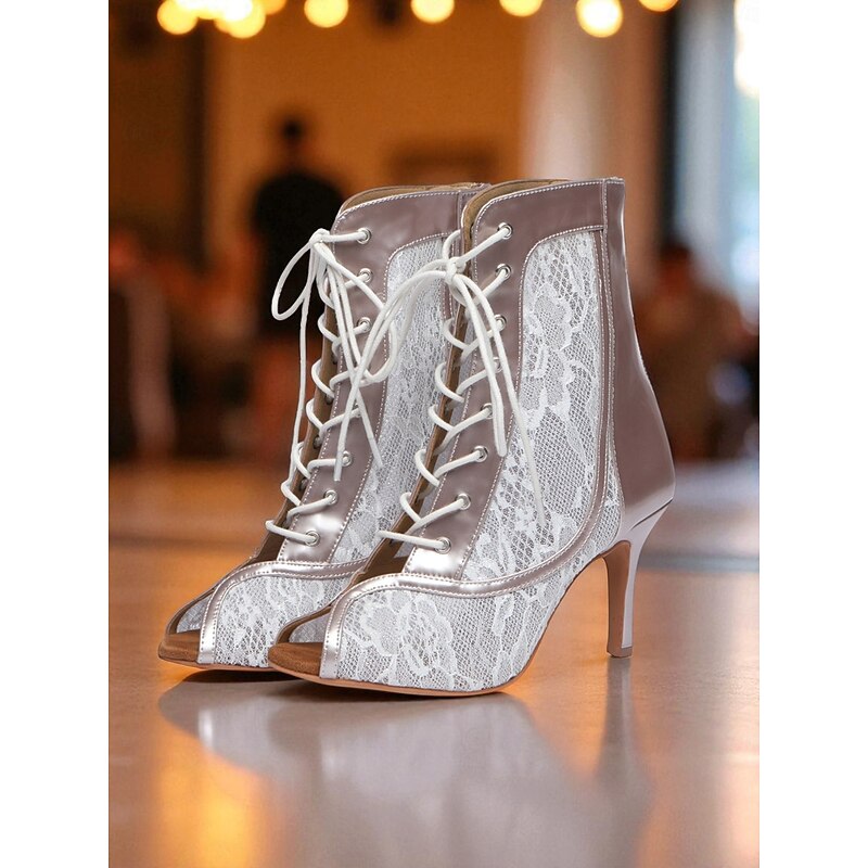 Women's Lace Peep Toe Ankle Boots - Satin Mesh Lace-Up Stiletto Heels for Professional Ballroom and Latin Dance 1