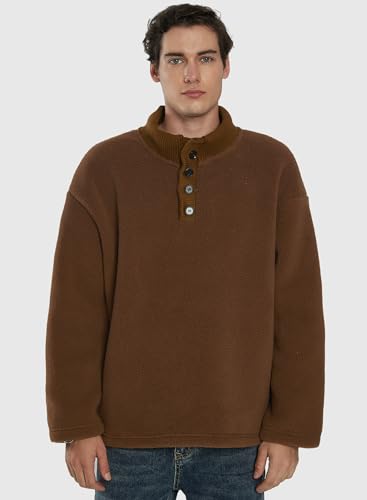 • FUZZY SWEATSHIRT FEATURES - Men's Casual Half Snap Fleece Pullover Jackets with soft fleece, perfect to pair with Denim Jeans, Cargo Pants and Sweatpants. And you can wear shirt or sweater inside the loose sherpa coat to show your charm.