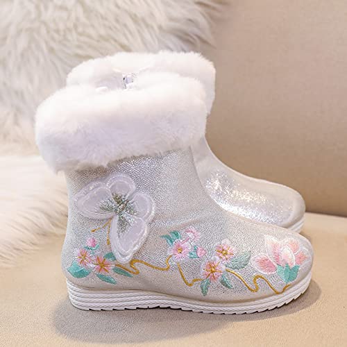 Breathable Boots 3 to 13 Years Girls Shoes Butterfly Embroidered Warm Cotton Boots Embroidered Boots National Boots 5