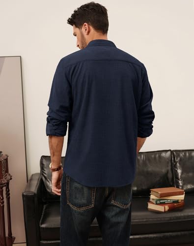 • Premium Material: Crafted from high quality waffle-textured pattern fabric that's soft, lighweight, breathable, wrinkle-resistant and wear-resistant, ensures all-day comfort, durability and easy maintenance, this mens long sleeve button down shirts provides both warmth and style in cool weather days