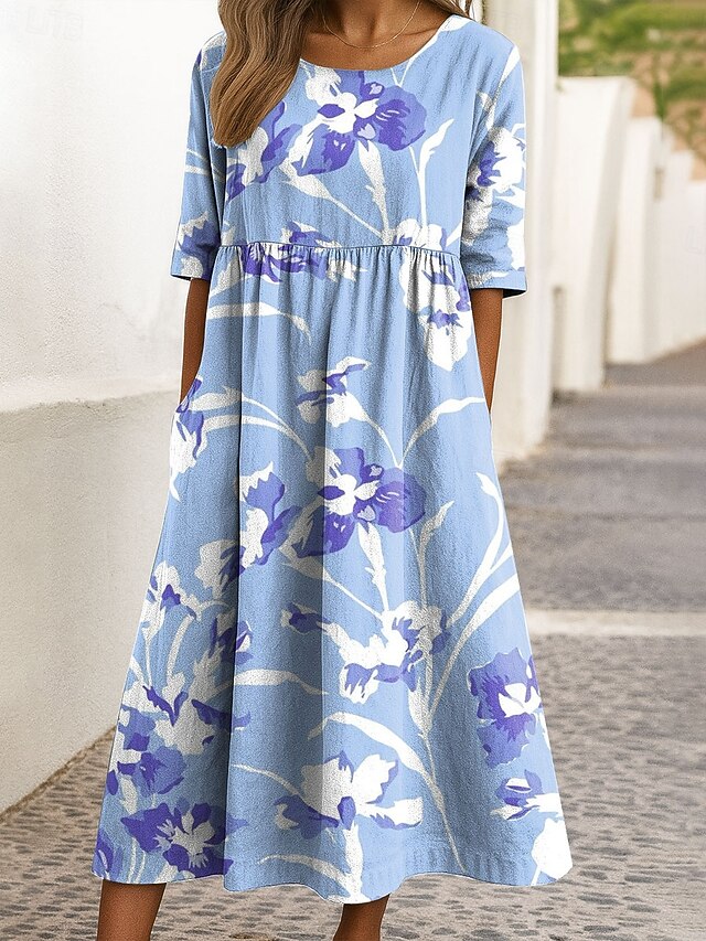 HOT ! Women's Midi Dress Casual Dress A Line Dress Summer Dress Vacation Casual Holiday Loose Fit Floral Graphic Half Sleeve Crew Neck Yellow Pink Blue Green Summer Spring