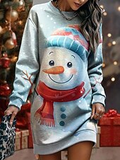More information about Christmas Women's Mini Dress Shift Dress Vacation Casual Birthday Holiday Date Regular Fit Graphic Ugly Christmas Long Sleeve Crew Neck White Blue Spring Fall Winter