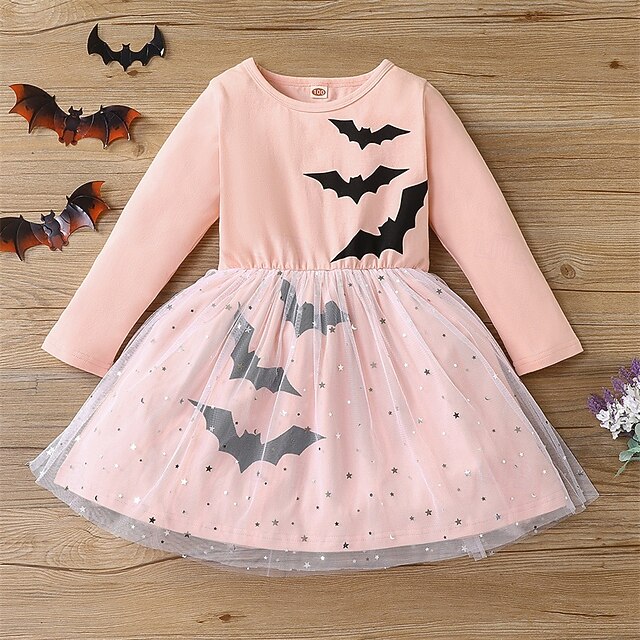 Girls' 3D Bat Dress Long Sleeve Spring Fall Vacation Daily Holiday Princess Beautiful Sweet Little Kids(4-7ys) 4-7 Years Casual Dress A Line Dress Tulle Dress Knee-length Regular Fit 5