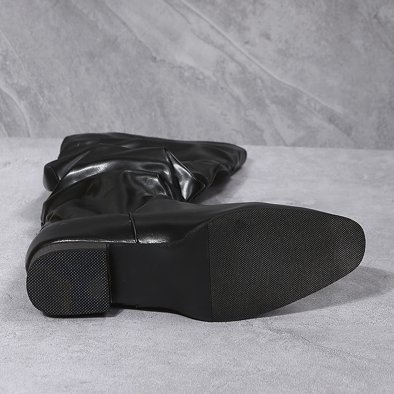Highlights [Fabric] Expertly crafted from high-quality PU leather, these women’s knee-high boots offer a sleek and smooth finish. The faux leather construction ensures durability and a polished appearance, making them ideal for stylish autumn and winter ensembles. [Style & Fit] Featuring a sophisticated slouch design, these boots offer a relaxed yet chic fit. The pointed toe and low block heel provide an elegant silhouette, while ensuring comfort and ease for all-day wear. [Design Highlights] These boots stand out with their fashionable knee-high length and versatile slouchy style. The classic pointed toe and subtle low heel deliver a modern look that elevates any outfit, making them a must-have addition to your seasonal wardrobe. [Occasions] Perfect for everything from casual outings to more polished looks, these boots are versatile enough for a variety of fall and winter occasions. Dress them up with a dress or keep it casual with jeans for a stylish touch to any ensemble. [Size Range] Available in a wide range of sizes from UK 14.5 to EU 50, these boots accommodate various foot sizes, ensuring a comfortable fit for many.