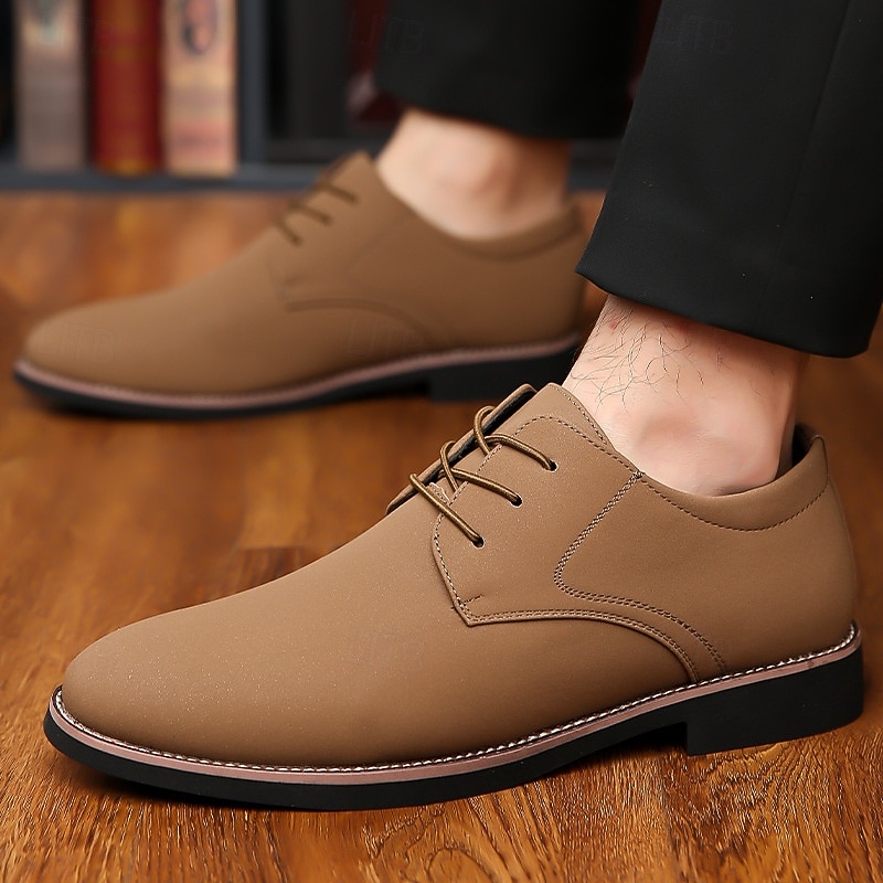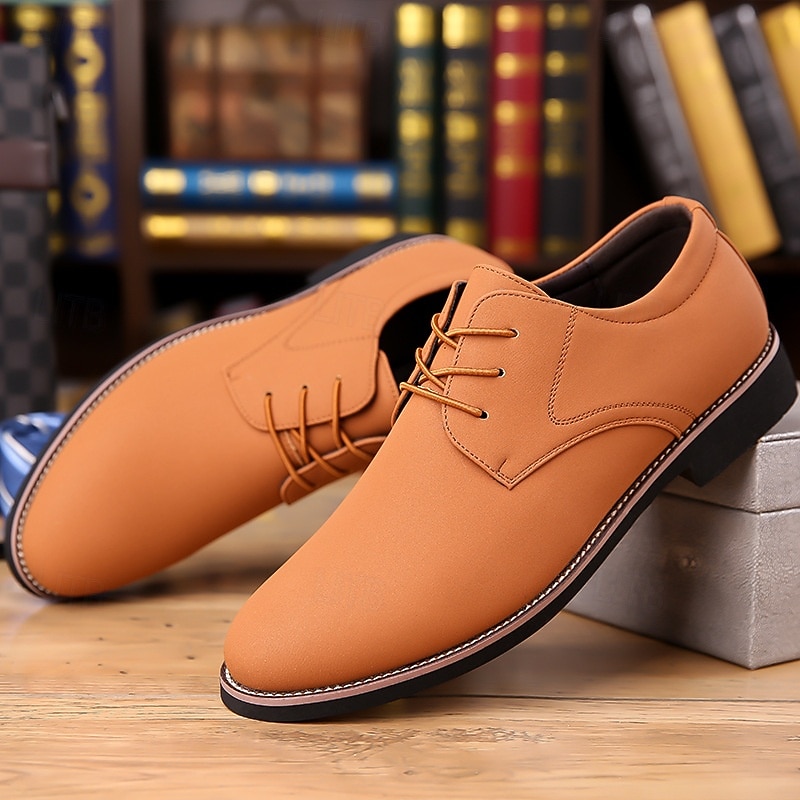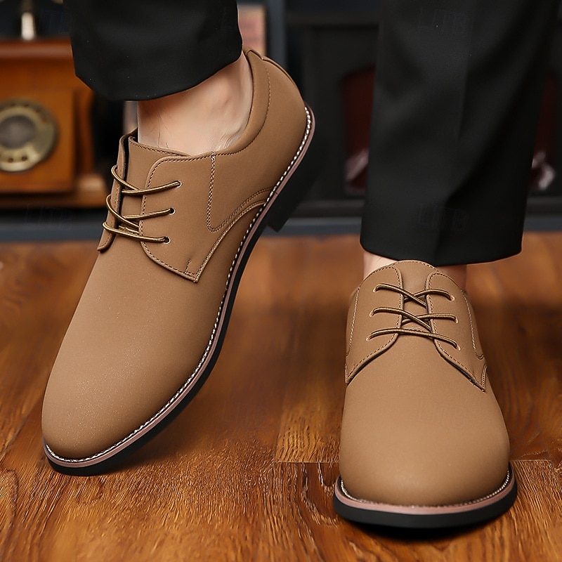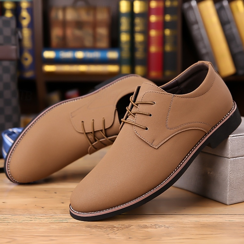 HOT ! Men's Tan Faux Leather Oxford Shoes – Classic Lace-Up Design for Office, Formal Events, and Business Wear