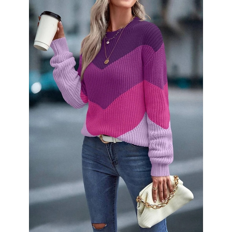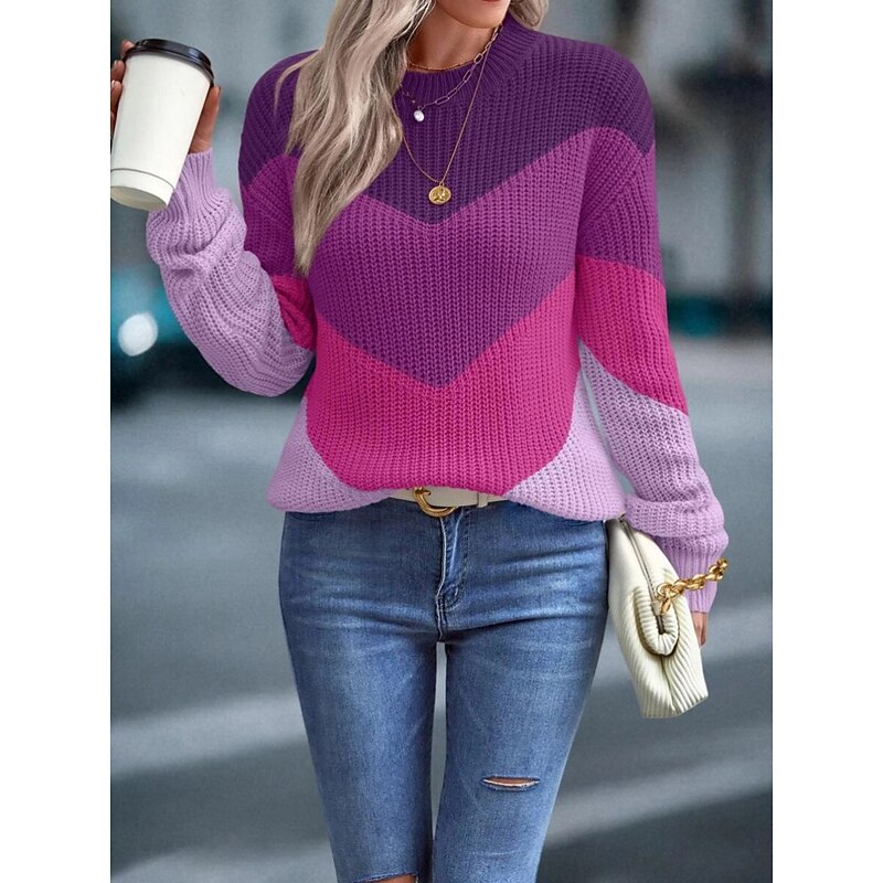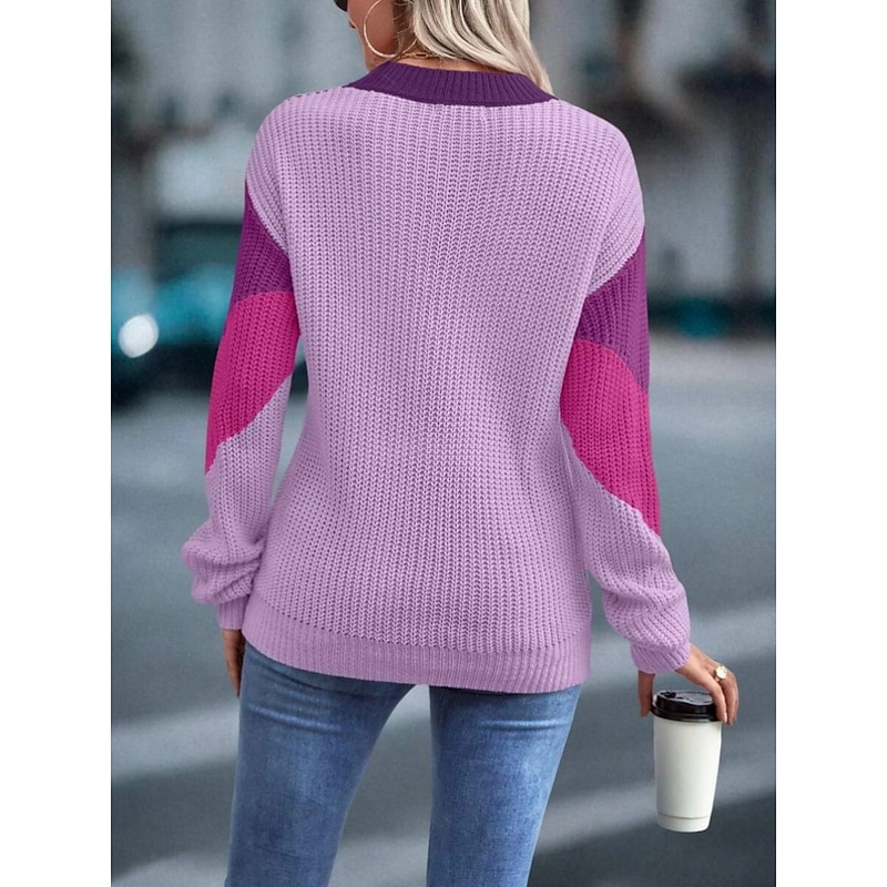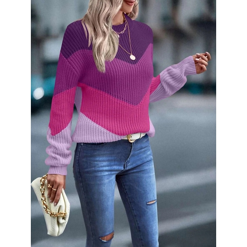 More information about Women's Sweater Pullover Sweater Jumper Casual Soft Color Block Ribbed Crew Neck Knitted Long Sleeve Regular Tops Knit Outdoor Daily Weekend Fuchsia Green Fall Winter
