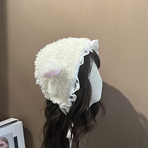 HOT ! Fleece Animal Hat Cute Sheep Cap for Girls, Cute Y2k Beanie Kawaii Cap Winter Headwear Cosplay Photo Props Party Supplies