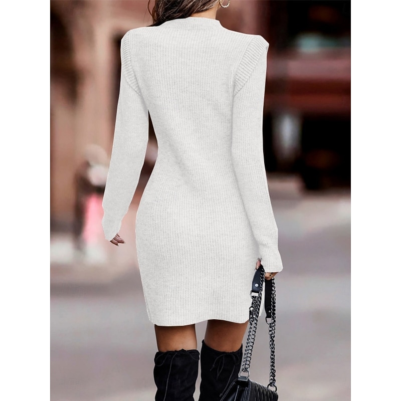 More information about Women's Mini Dress Casual Dress Winter Dress Sheath Dress Fashion Modern Daily Date Weekend Regular Fit Plain Long Sleeve Crew Neck White Wine Khaki Gray Spring Fall Winter Autumn