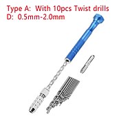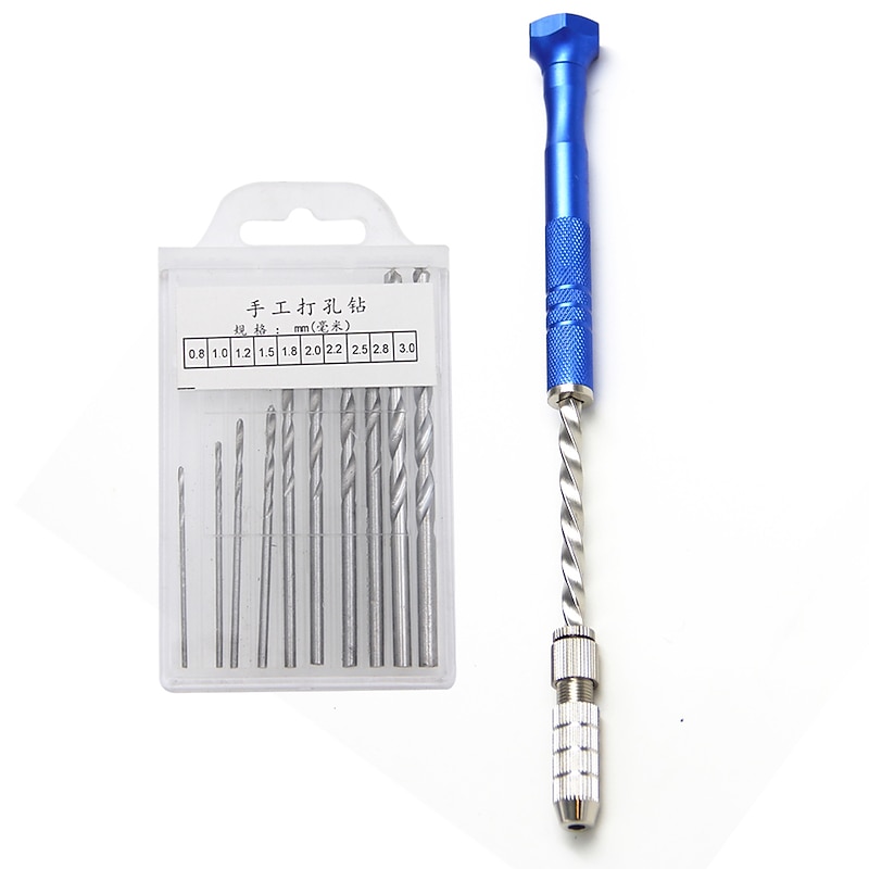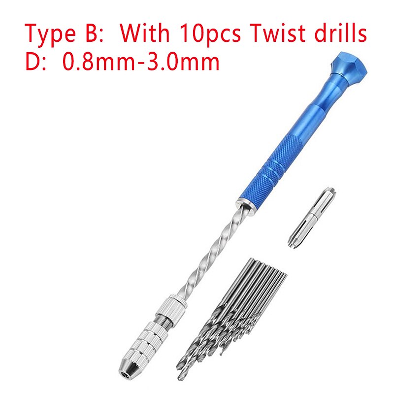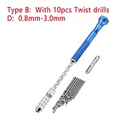 0.5-3mm Semi-automatic Mini Hand Twist Drill Set With 10pcs Small Bits And 2pcs Double Side Chucks For Drilling Wood 10