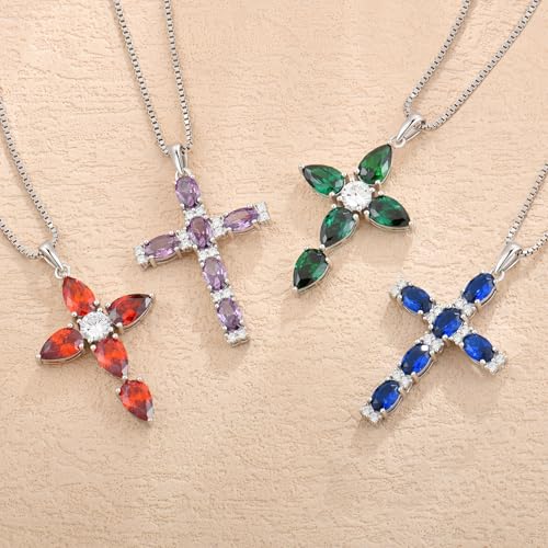 Cross Necklace for Women 925 Sterling Silver Teardrop Birthstone Pendant Religious Jewelry Gifts for Women 5