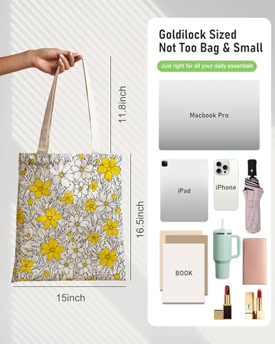 • Daisy Tote Bag with Vibrant Double-Sided Design: Fade-resistant prints on both sides of heavyweight 12oz tear-resistant canvas deliver 2 aesthetic styles in 1 bag for versatile daily use