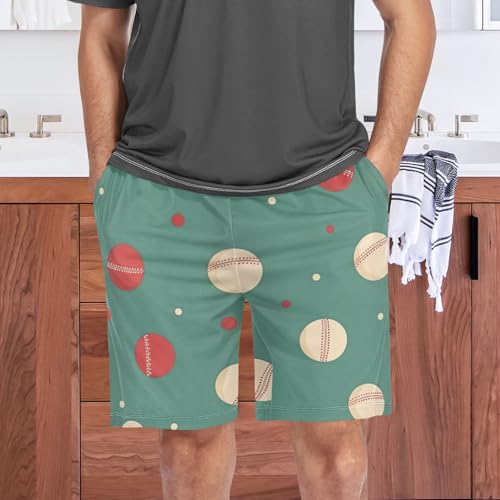Men's Short Pajama Bottoms Cricket Ball Sport Green Home Casual Sleep Pants 5