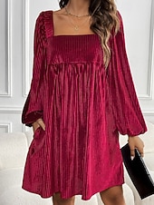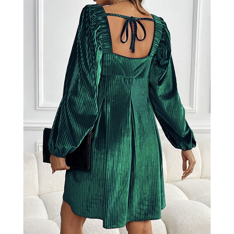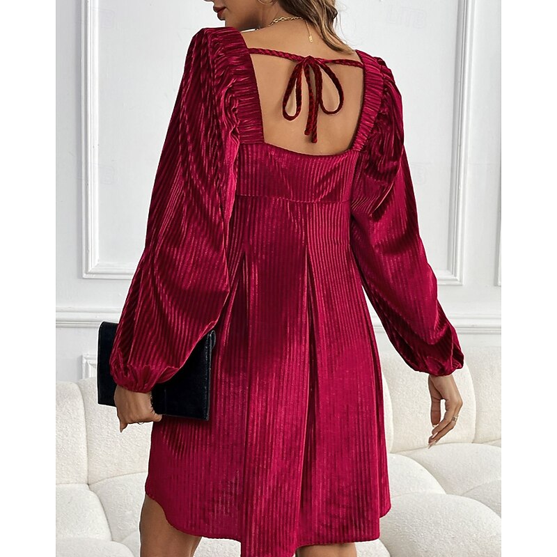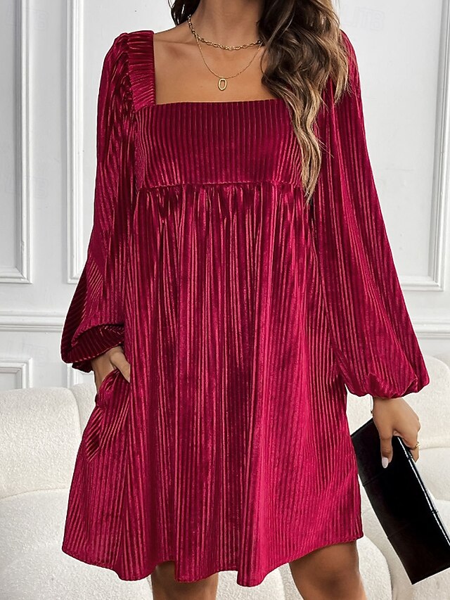 More information about Women's Mini Dress Velvet Dress Party Dress Cocktail Dress Elegant Modern Party Evening Party Date Regular Fit Plain Long Sleeve Square Neck Wine Dark Green Brown Fall Winter