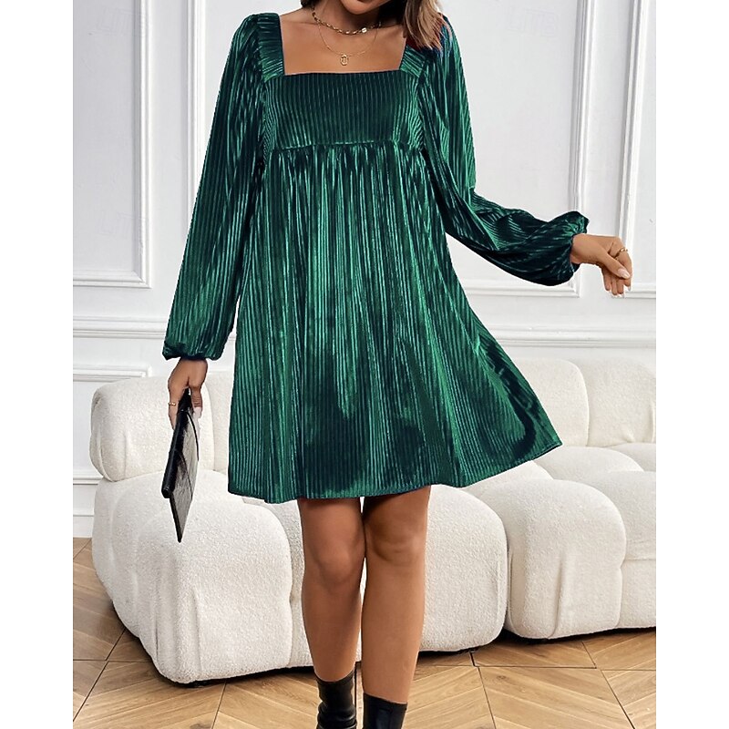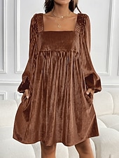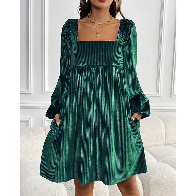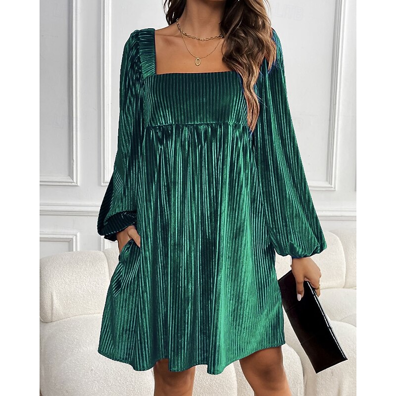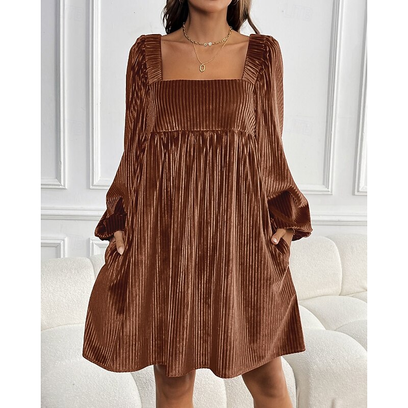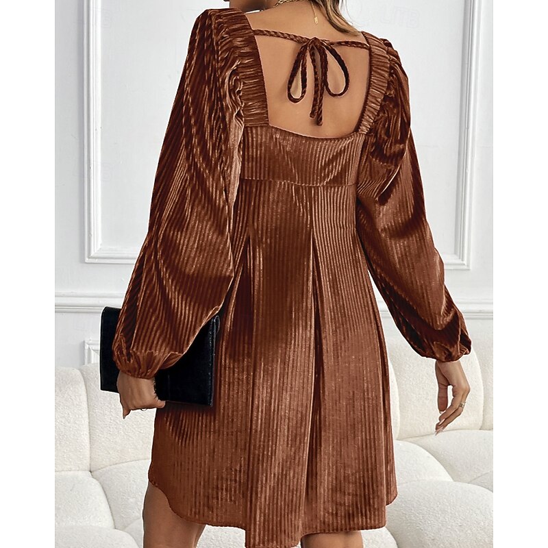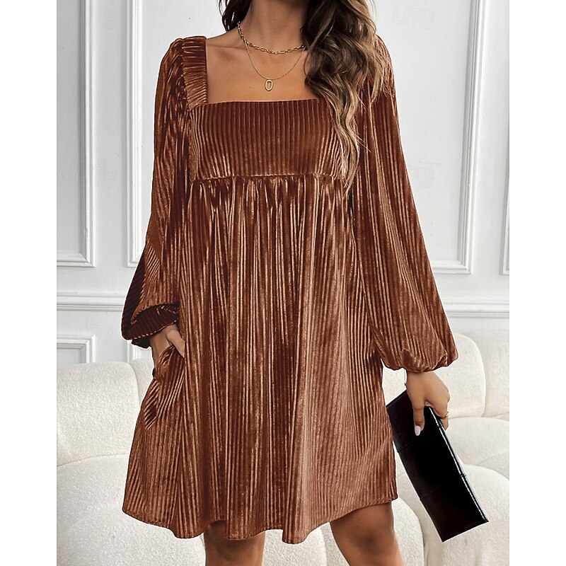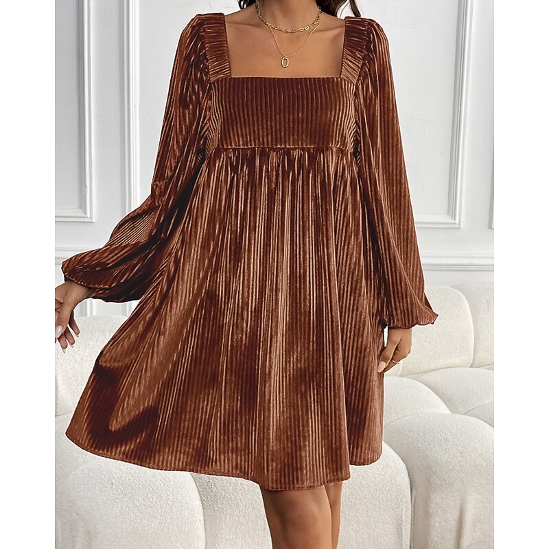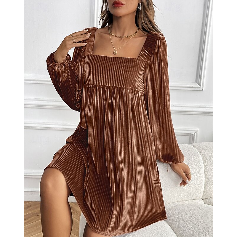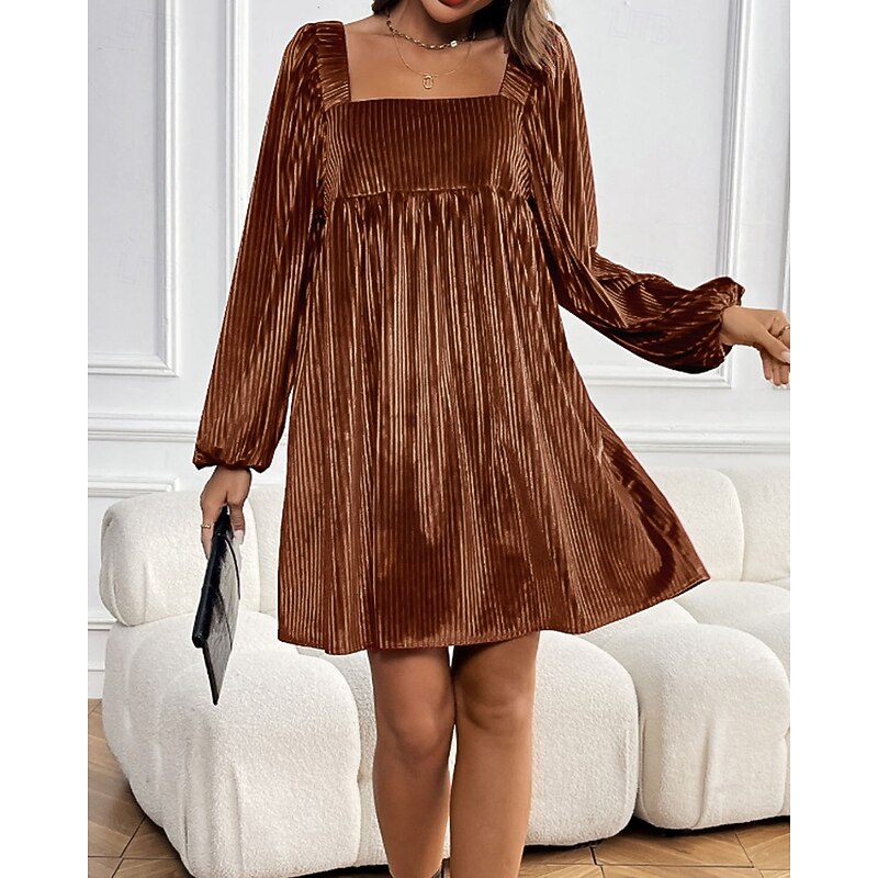 HOT ! Women's Mini Dress Velvet Dress Party Dress Cocktail Dress Elegant Modern Party Evening Party Date Regular Fit Plain Long Sleeve Square Neck Wine Dark Green Brown Fall Winter