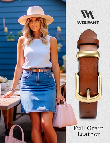 WOLFANT Womens Belts for Jeans,1.1" Fashion Ladies Belt with Gold Buckle,100% Italian Full Grain Real Solid Leather 6