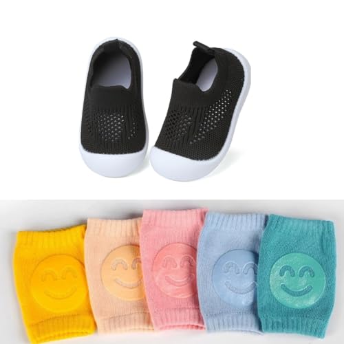 Baby Toddler Walking Shoes Boys Girls Sandal Breathable Sneakers Shoes for Walking Running with 5 Packs Anti Slip Knee Pad Protectors 18-24 months 5