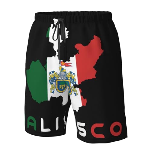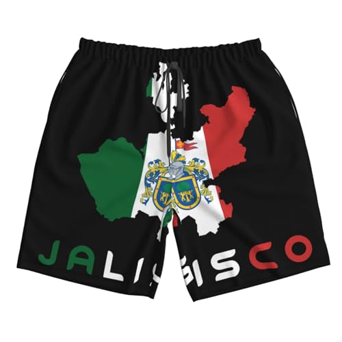 HOT ! Jalisco Mexico State Flag Men's Swim Trunks Quick Dry Swimwear Beach Shorts with Mesh Lining and Pockets