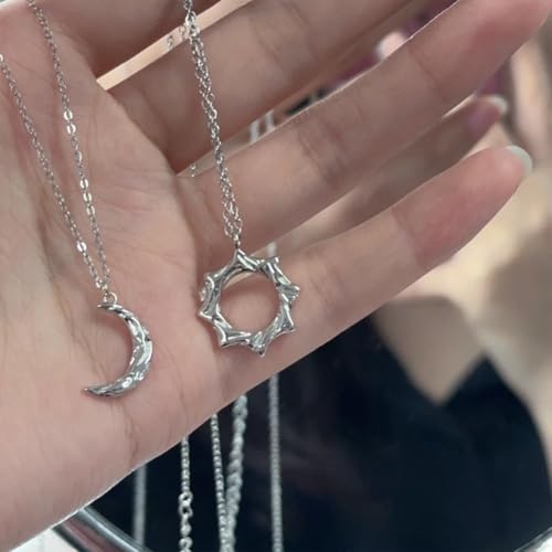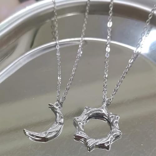HOT ! Sun and Moon Necklace for Couples Matching Friendship Necklace North Star Crscent Necklace Pendant Silver Best Friend BFF Necklace for 2 Dainty Birthday Lover Gift Jewelry 2Pcs Set
