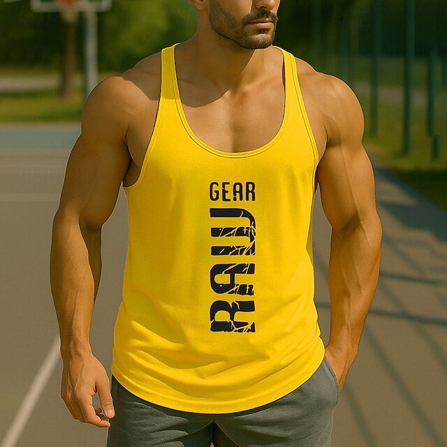 More information about Men's Tank Top Vest Top Undershirt Sleeveless Shirt Sleeveless Crew Neck Summer Letters Fashion Designer Basic Classic Vacation Street Going out Black Yellow Red Top Tee for Men