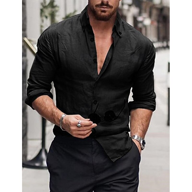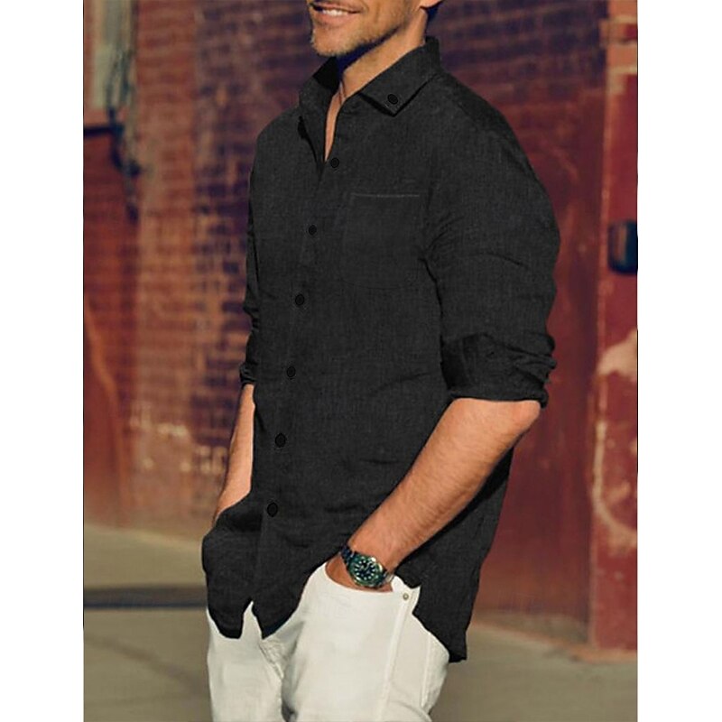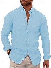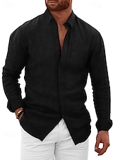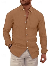 More information about Men's Shirt Linen Shirt Summer Shirt Beach Wear Button Up Shirt Plain Vacation Casual Black White Blue Brown Long Sleeve Button Down Collar Spring & Summer Clothing Apparel