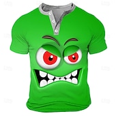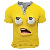 More information about Men's Cartoon Human face T Shirt Henley Shirt Short Sleeve Designer Retro Vintage Casual Street Casual Daily Summer Spring Yellow Green Blue Henley Henley T-Shirt