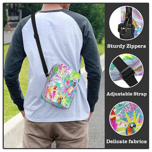 Colorful Tropical Parrot Flowers messenger bag for women crossbody shoulder bag men Woman Shoulder Handbags Adjustable Strap for business Casual 2