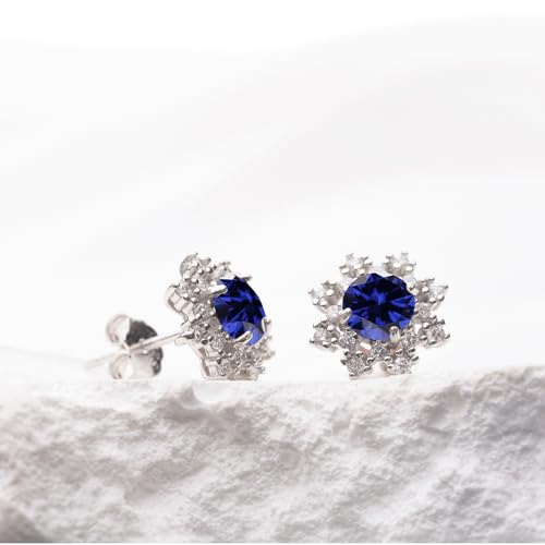 • Material: Hypoallergenic earrings for women and young lady, Crafted in rhodium over 925 sterling silver with 0.5 ct lab created Sapphire surrounded by 16 cz diamonds,safe for sensitive ears