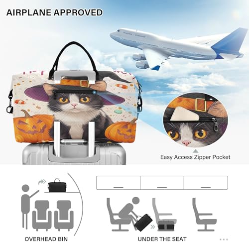Halloween Travel Gym Bag, Halloween Pumpkin Cat C Weekender Overnight Duffle for Women with Toiletry Bag Travel Swim 4