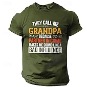 HOT ! Mens Funny Grandpa Graphic T-Shirt - Partner in Crime Bad Influence Family Humor Short Sleeve Gift