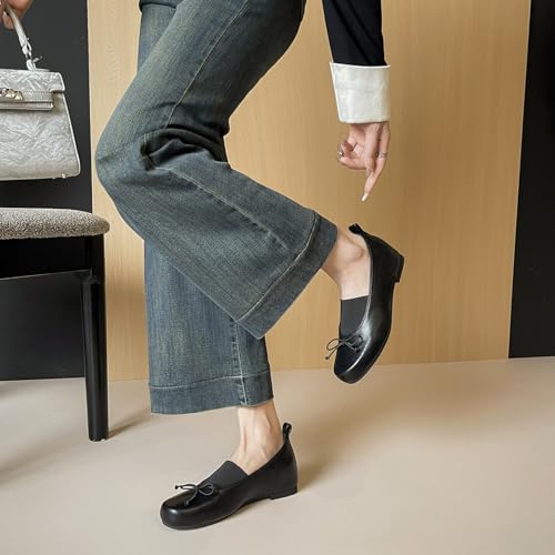 • Classic Material: Crafted From Premium Leather And Accented With A Delicate Bow, These Women'S Closed-Toe, Round-Toe Ballet Flats Imbue An Elegant And Stylish Look, Effortlessly Elevating Your Style.