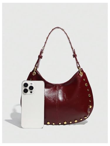 HOT ! Verdusa Women's Vintage Studded Leather Shoulder Bag Top Handle Clutch Purses with Metal Chain